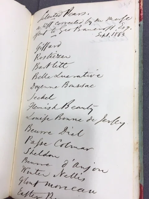 A list of “Selected Pears” in Emerson’s tree log. Photo by R. Davis.